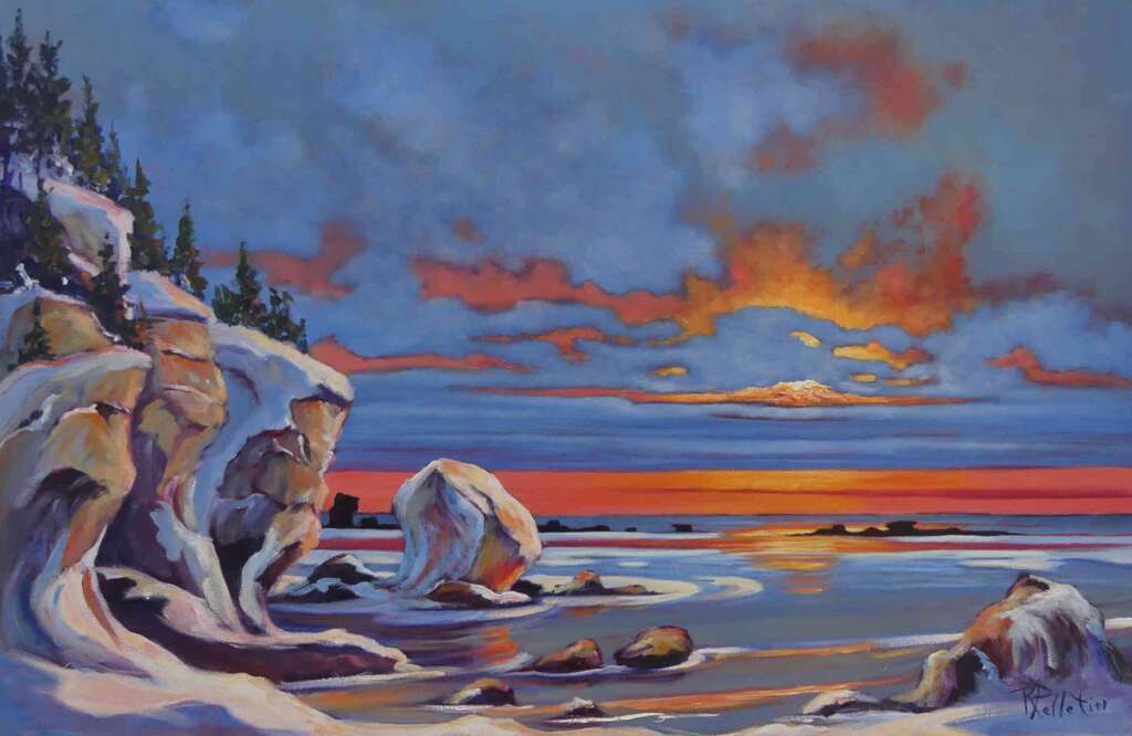 Géants de la nature Dance nocturne, 36 x 18 Valse amoureuse, 18 x 30 Gravir la montagne, 32 x 20 Lui montrer le chemin, 20 x 24 Accompagner le lever de la lune, 20 x 24 Répondre à son appel, 16 x 24 Vendu, Enfanté par le froid, 36 x 24 Entre connaissances, 26 x 16 Vendu, Bleu glacier, 30 x 36 Vendu, La ligne du départ, 18 x 36 Depuis la nuit des temps, 30 x 30 Creusés par l’écho, Mingan, 24×36 Entre deux marées, Niapiskau, Mingan, 20 x 36 Rejoindre son regard, Hopewell Rocks, 24 x 24 Rêverie en équilibre, 40×28 Baigné de lumière, Mingan, 30×36 Seuls au monde, N-B, 24 x 24 J’ai pensé à toi, Iles de la Madeleine, 24×24 Ce moment tant attendu, Mingan, 24×24 Réflexion rose, 9×12 Au premier jour, 20×30 Un regard posé sur l’horizon, Battle Harbour, 30×20 Banquise à Kamouraska, 20×30 La Vauréal, Anticosti, 36×30